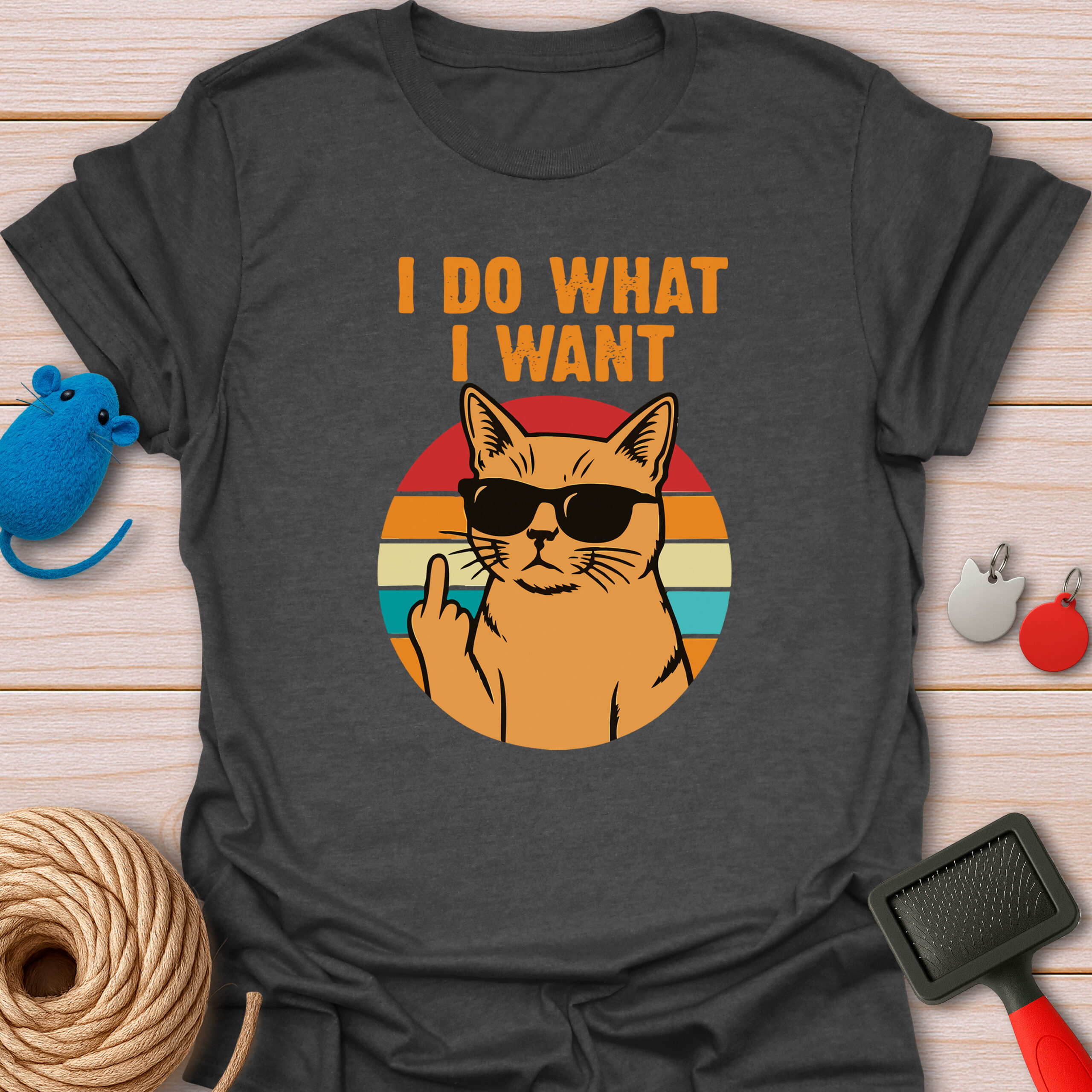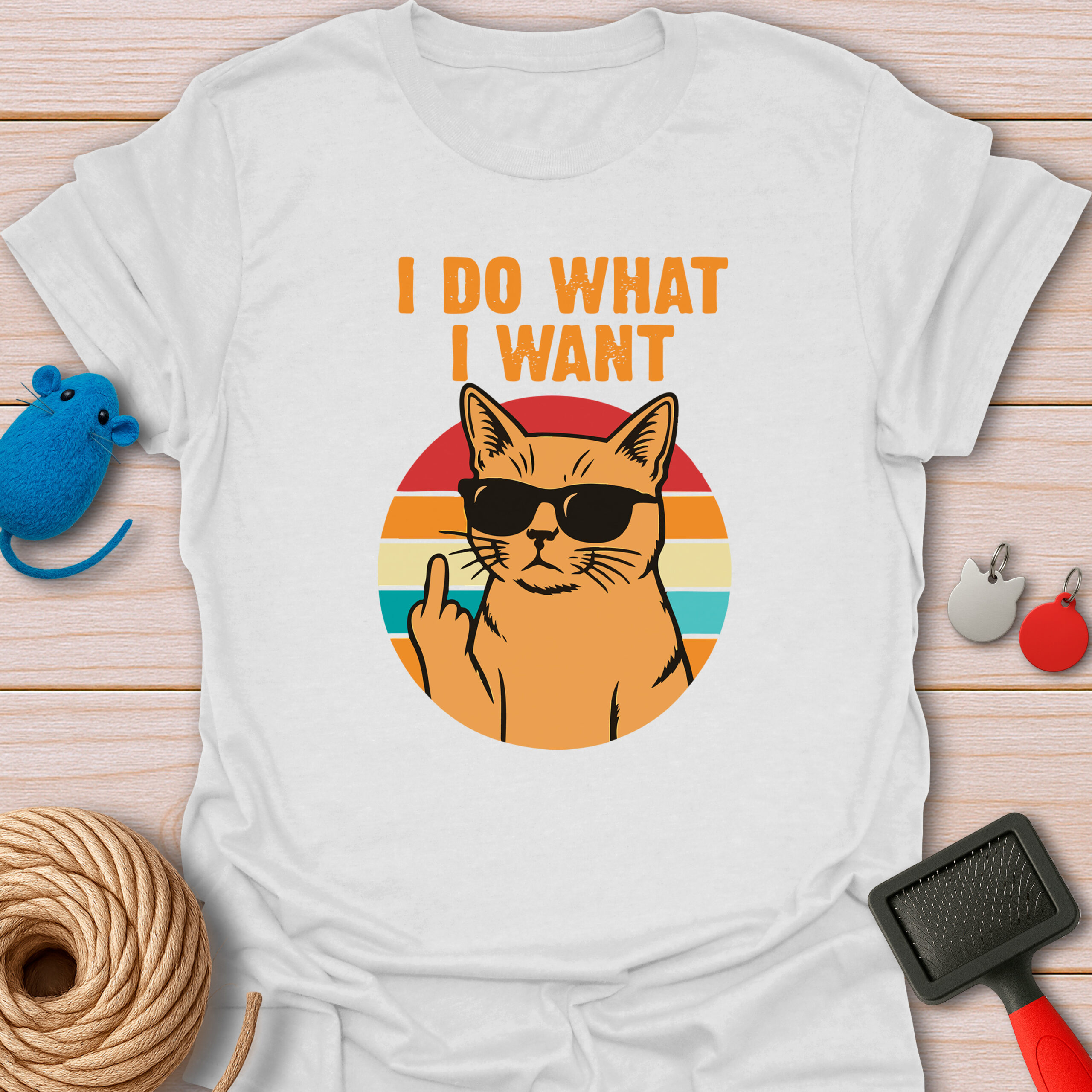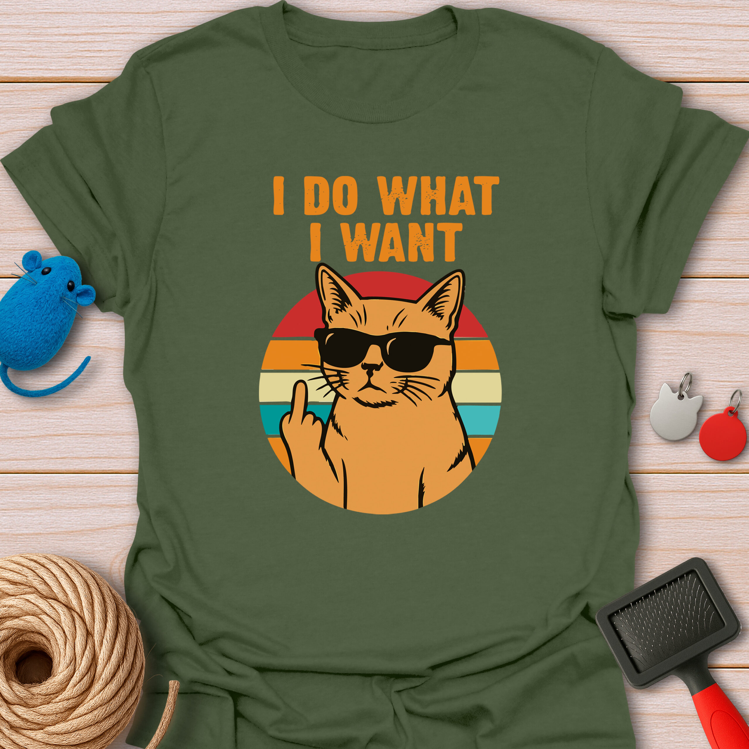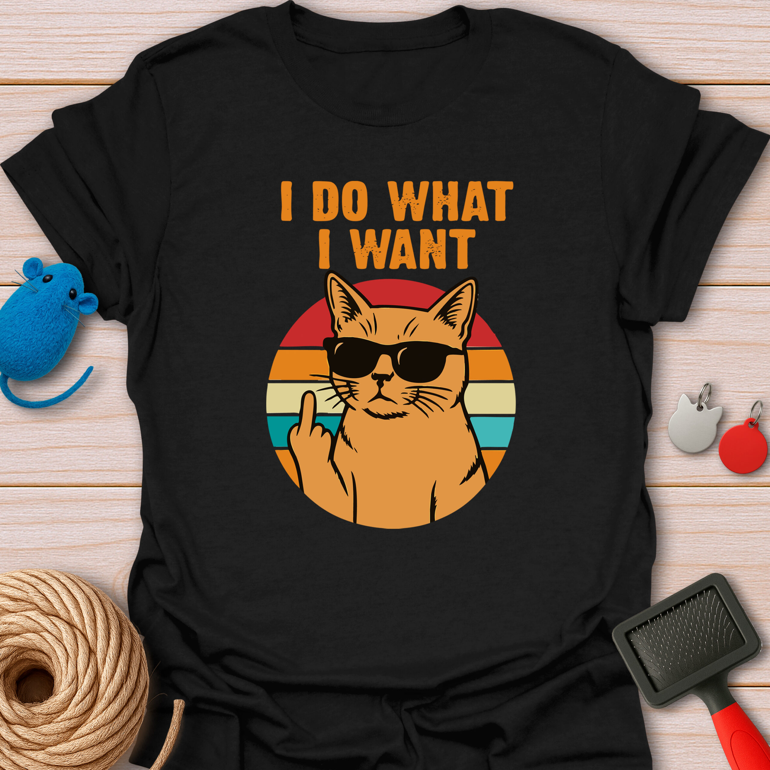 Keywords / Tags: I do what I want shirt, sassy cat tee, retro cat shirt, funny cat attitude, middle finger cat, rebel cat, vintage sunset, cat with sunglasses, humor graphic tee.