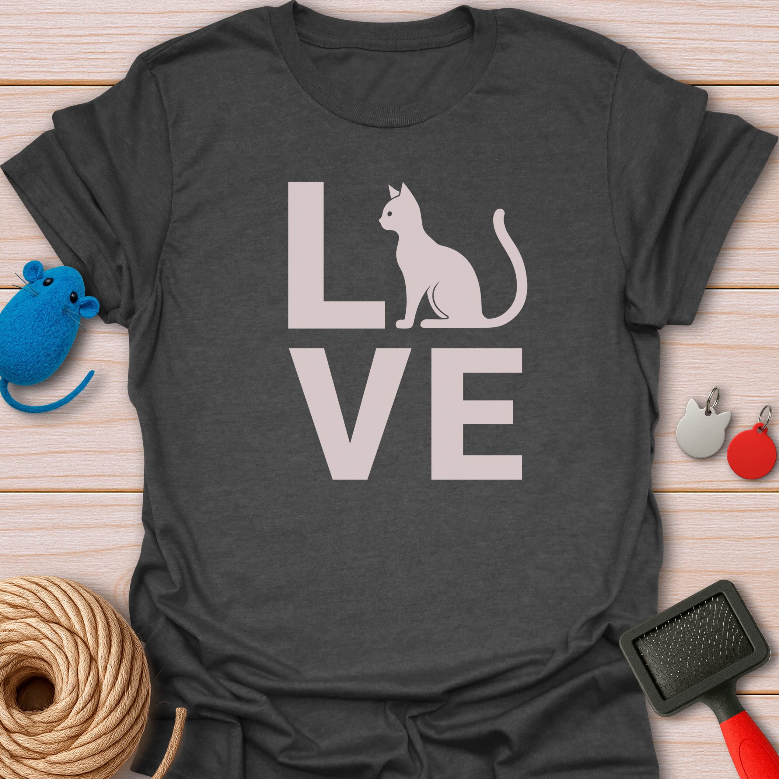 Wear your heart on your tee! This sweet design uses a beautiful cat silhouette to spell “LOVE”. The purrfect Valentine’s Day gift or everyday essential for devoted feline lovers.