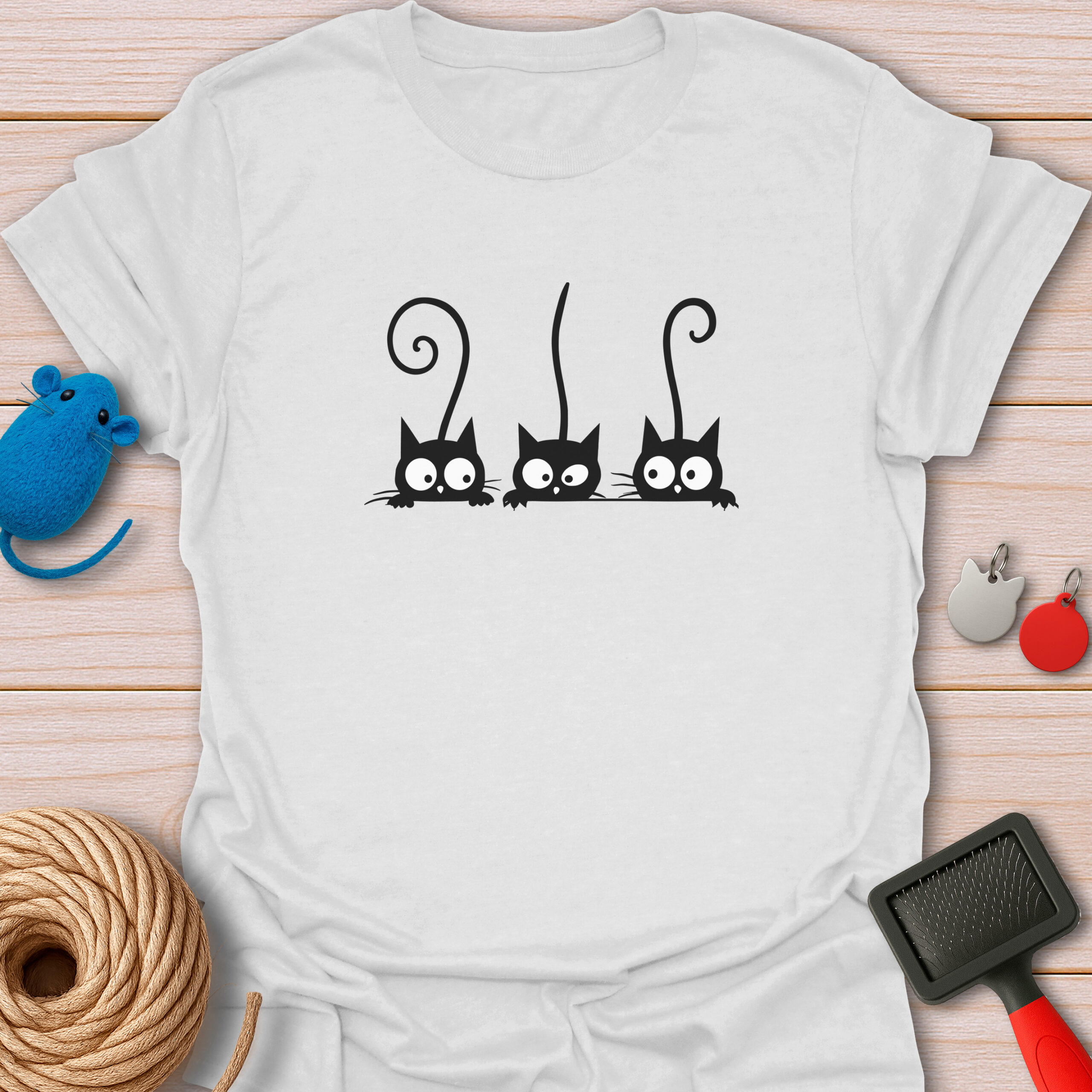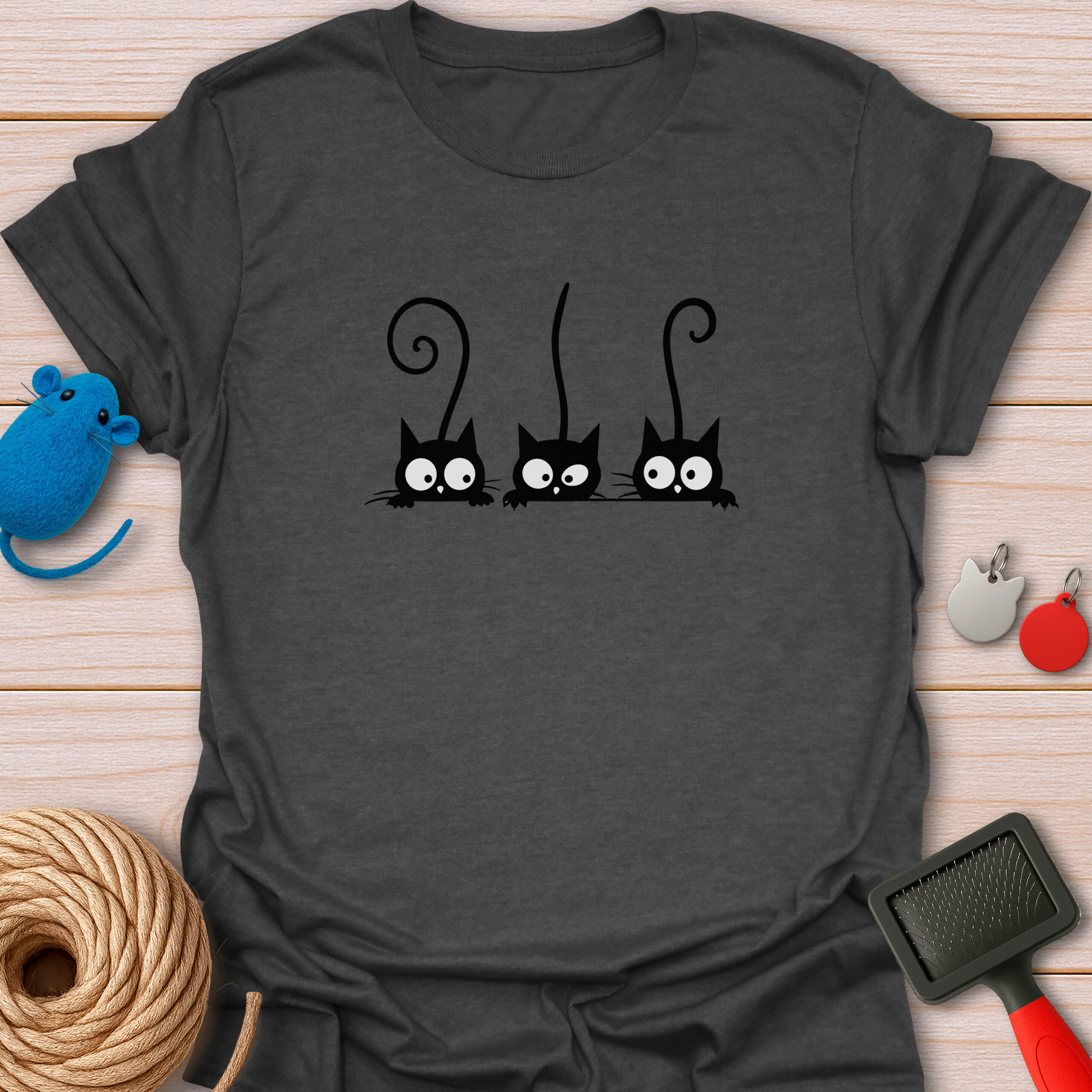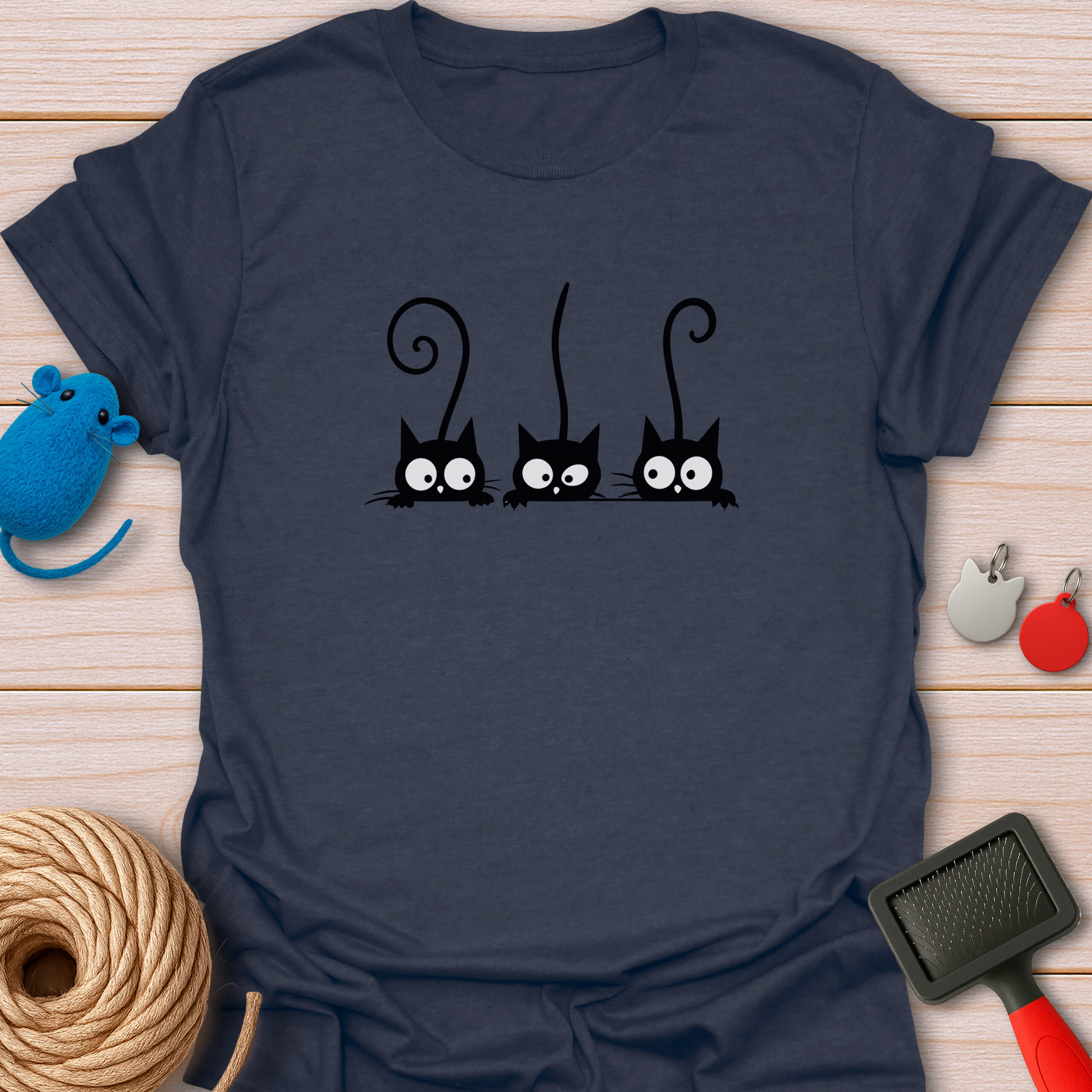 Keywords / Tags: Peeking cats, black cat shirt, funny cat tee, gossiping cats, cat lover gift, three cats, cute black cat, curious kittens, graphic tee, cat mom apparel.