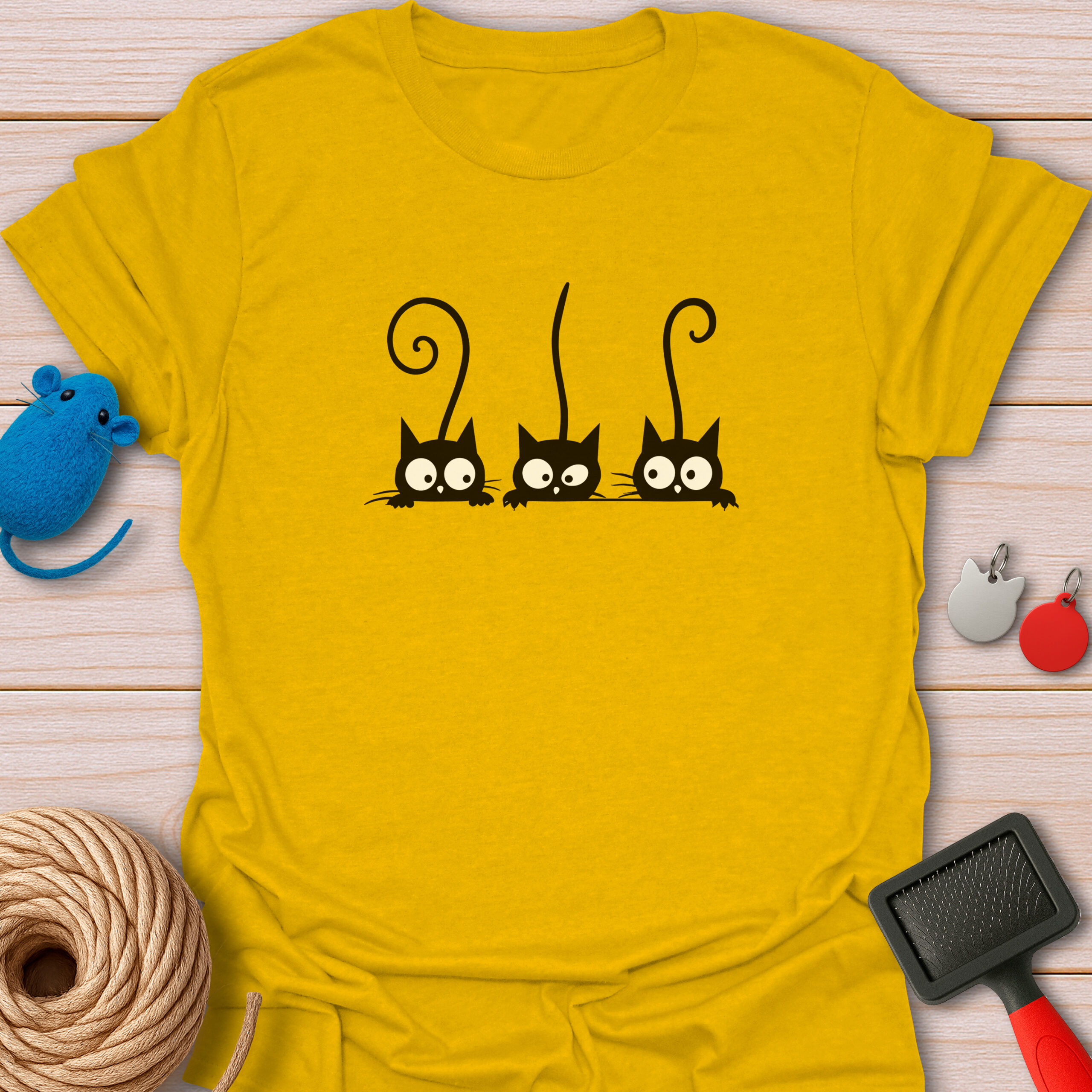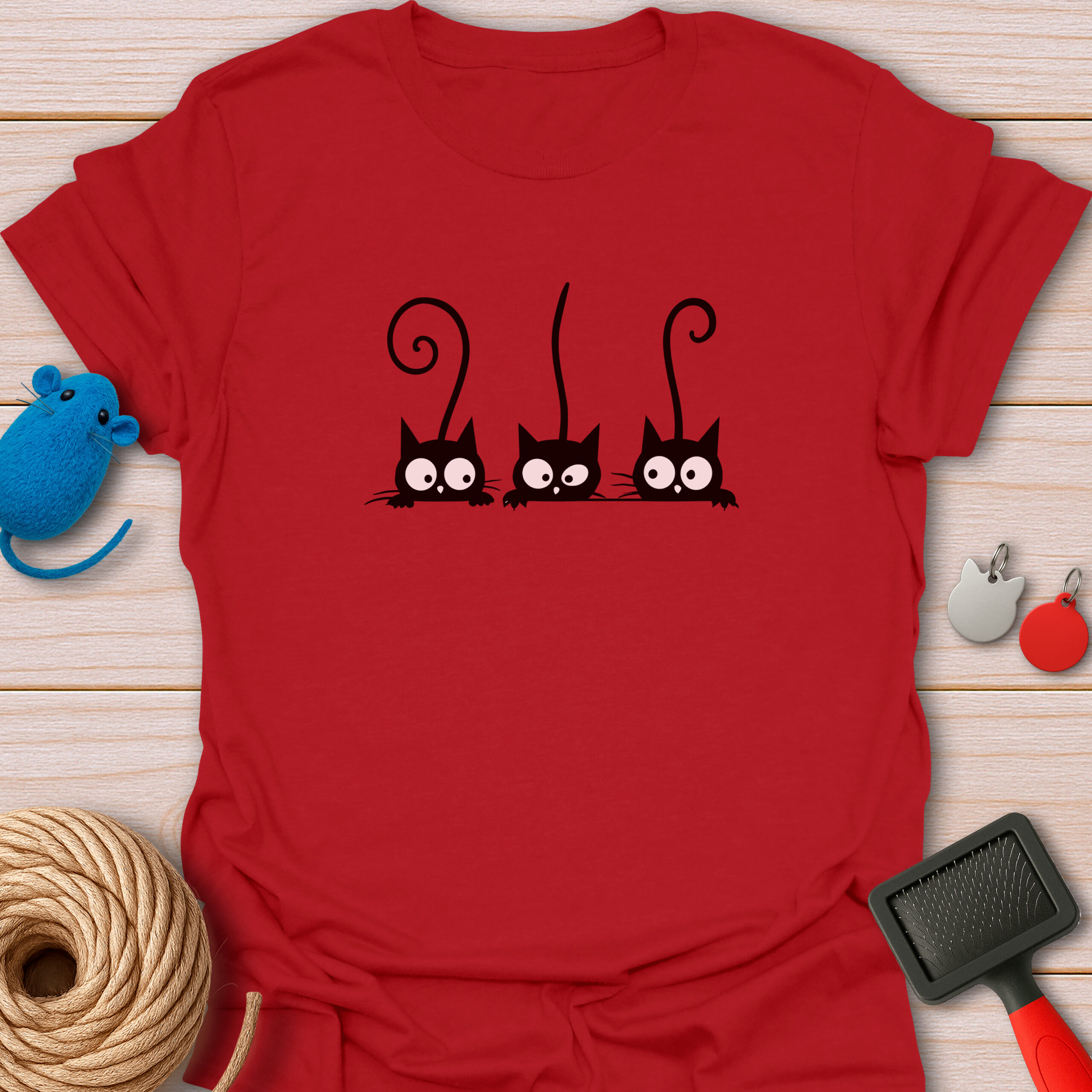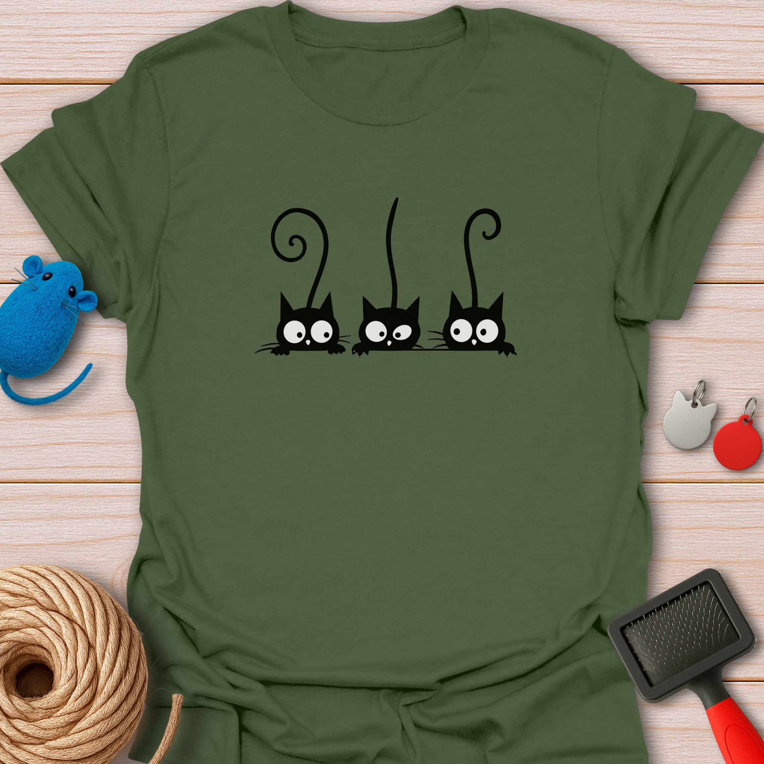 Keywords / Tags: Peeking cats, black cat shirt, funny cat tee, gossiping cats, cat lover gift, three cats, cute black cat, curious kittens, graphic tee, cat mom apparel.
